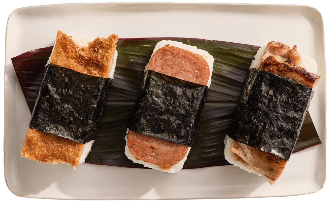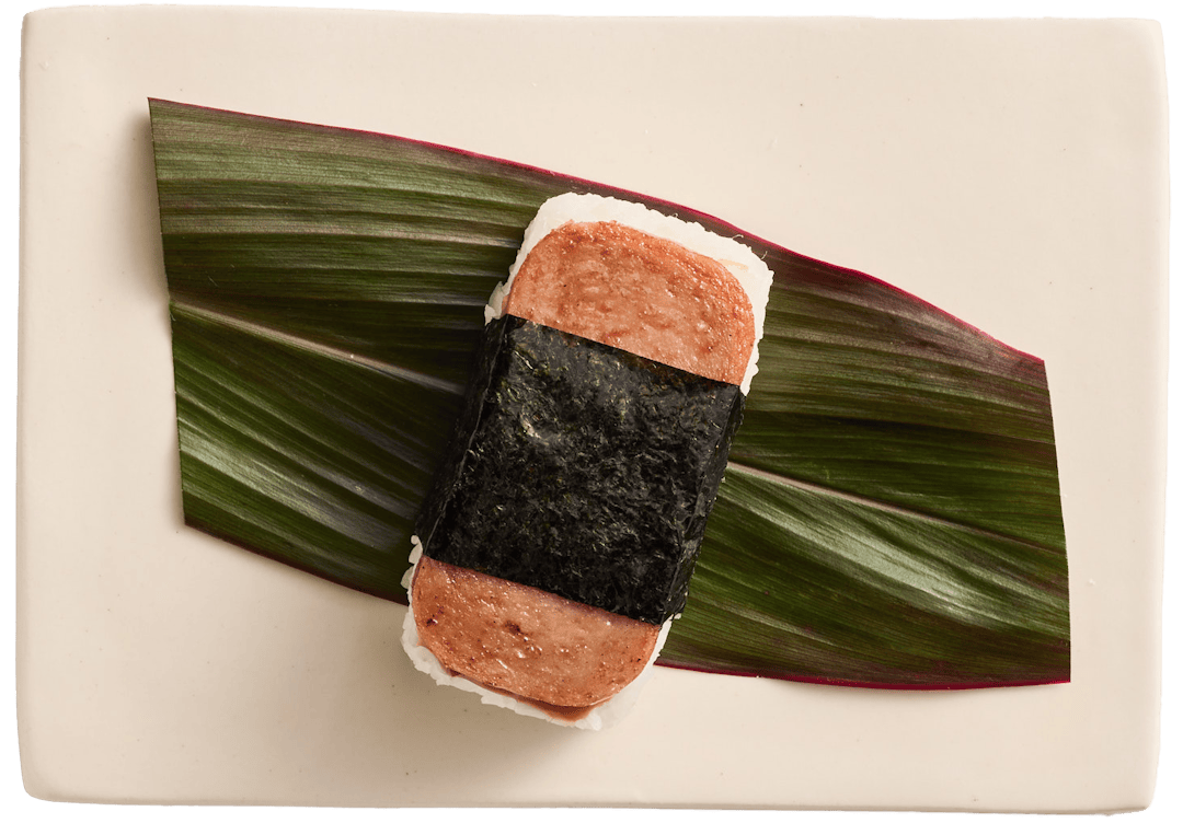 An island classic composed of a slice of grilled SPAM® on rice, wrapped in dried seaweed.